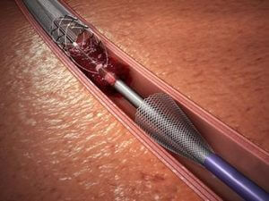 Often, patients will need a stent in their left common iliac vein to improve the flow after the clot Is removed and widen the capacity for blood to flow up the left leg.